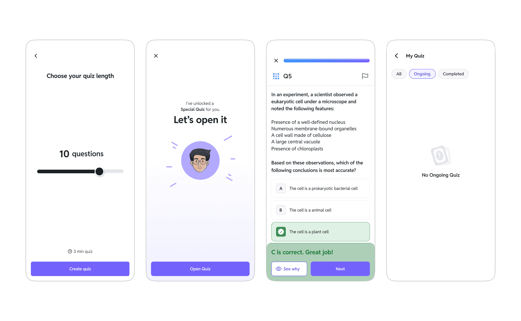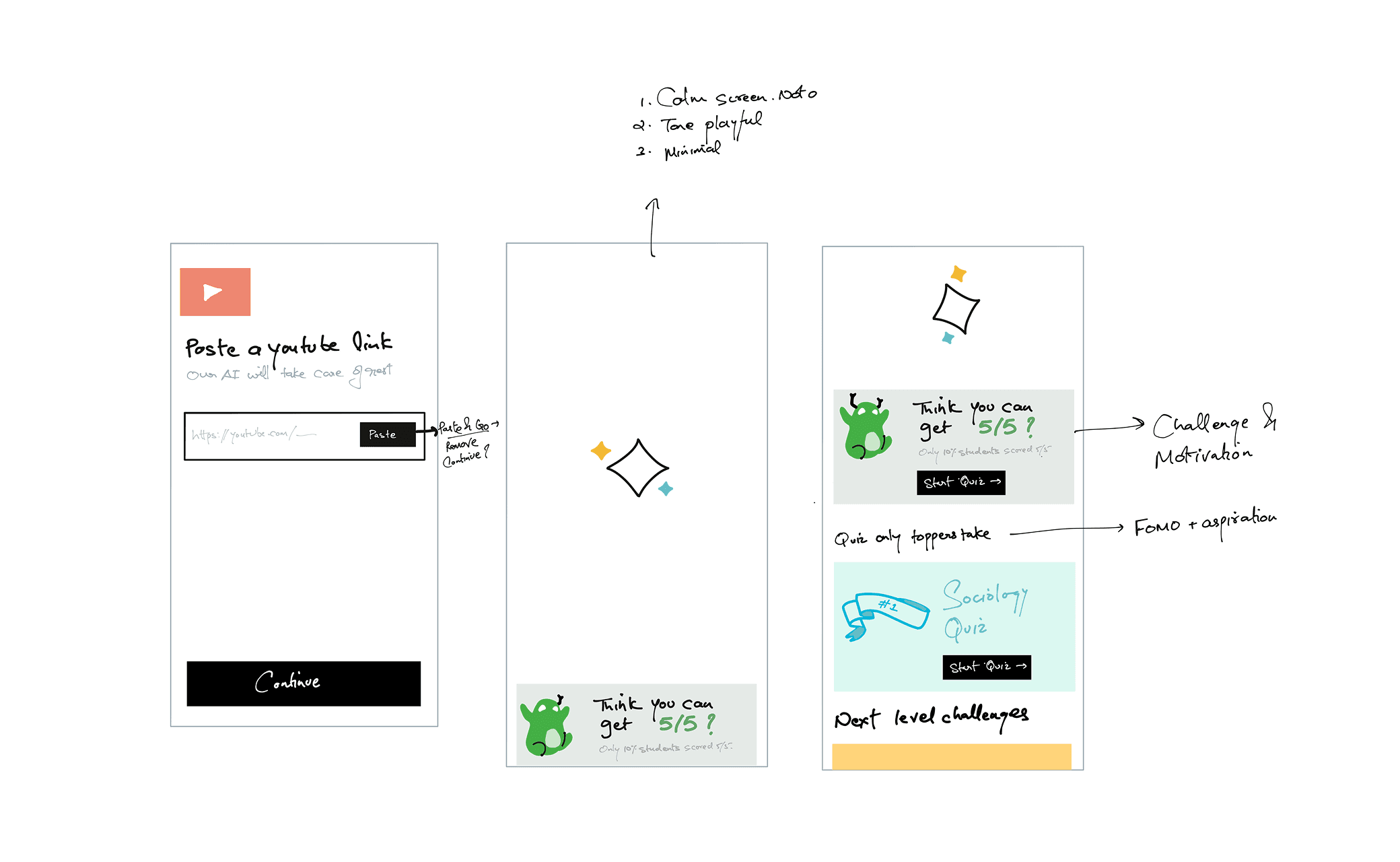 I started by studying what works in products like Duolingo, Quizlet, Brilliant, Solvely.ai, that make learning feel instant and rewarding.